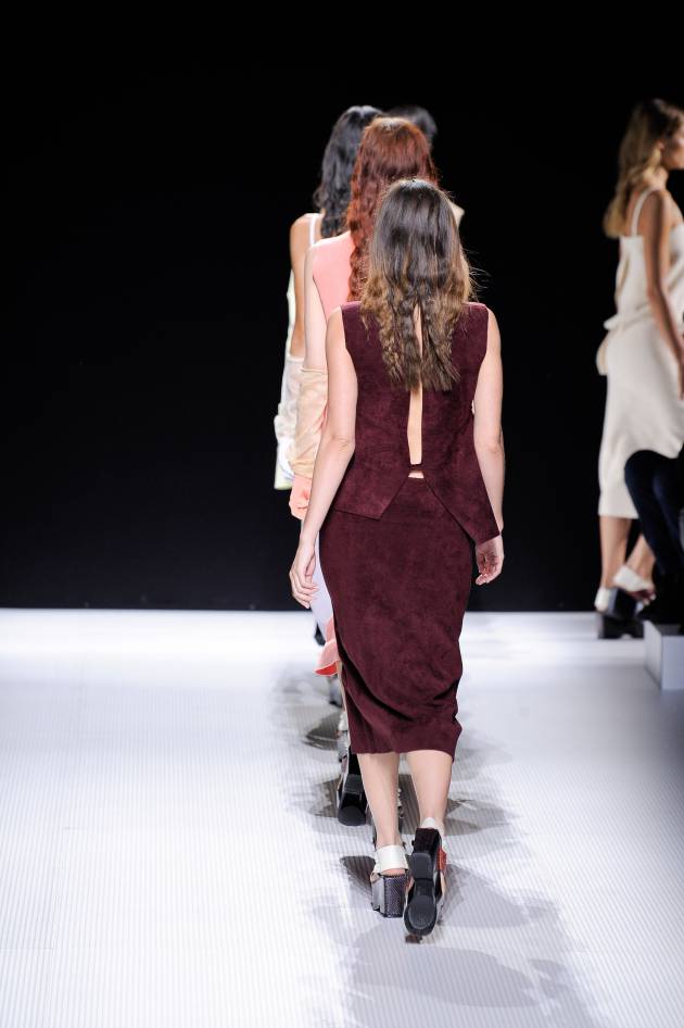 Quando i capelli sono quasi asciutti realizza una treccia. Grazie alla spuma che hai applicato in precedenza i capelli potranno mantenere il movimento. Per un effetto come quello visto durante la sfilata, inizia a intrecciare i capelli partendo dalle mezze lunghezze.