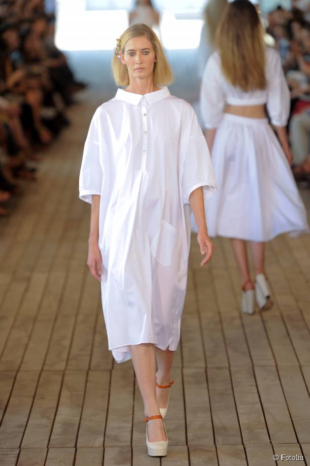 Qui il taglio è squadrato, senza essere scalato. "La chioma è liscia e folta, bisogna dunque pensare a un fermaglio per evitare che i capelli cadano sul viso. Soprattutto perché le ciocche non sono scalate. C’è chi sistema i capelli dietro le orecchie, ma chi ha i capelli folti preferisce fissarli con un fermaglio, come nella sfilata".