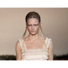 Il casco di capelli, visto sulle passerelle. Viste da lontano, le modelle sembrano portare un casco fatto di capelli. L’acconciatura dà l’impressione che i capelli siano arrotolati intorno alla testa e la proteggano come un casco. Ma guardando più da vicino è facile vedere che si tratta di qualcosa di molto diverso. La pettinatura è composta da trecce appiattite realizzate in orizzontale. Ben più glamour di un casco di capelli!