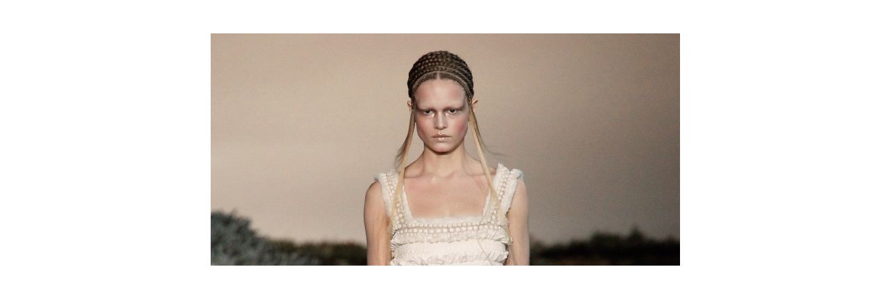 Come adottarlo? Realizzando delle trecce che non imitino il senso di quelle delle modelle della sfilata McQueen. Dividi la chioma in tante parti quante sono le trecce che desideri creare. Sei può essere il numero ideale. Intreccia quindi i capelli seguendo la tecnica delle trecce africane. Dimentica l’effetto troppo «casco» creato dalla pettinatura della sfilata e intreccia soltanto fino alle mezze lunghezze. Il resto dei capelli deve essere lasciato sciolto. Il fatto di intrecciare partendo dalle radici fino alle punte dà inoltre un aspetto austero che è meglio evitare.