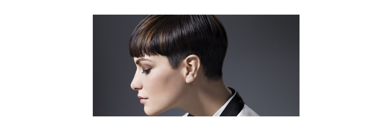 Il taglio corto si vuole grafico e perfettamente strutturato. La frangia è dritta e corta mentre sulla nuca e sui lati i capelli sono scalati. Anche la parte superiore dell’acconciatura è scalata per permettere varie pettinature, “appena alzata dal letto”, rock ‘n roll o perfettamente liscia.