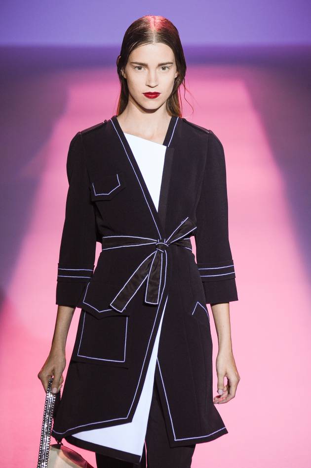 La tendenza? Capelli lisciati e strutturati da una riga al centro. Le radici hanno un effetto wet look che aggiunge un tocco di brillantezza. Le lunghezze, invece, scendono lungo la schiena per lasciare libero il viso e il décolleté. Sulla passerella quest’acconciatura è associata a un make-up molto femminile. L’incarnato e gli occhi restano naturali mentre la bocca è color rosso passion. Quanto all’abbigliamento, le mise sono eleganti ed essenziali.