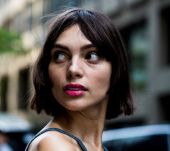 La frangia è stilizzata e cade sul lato. Viene lisciata con phon e piastra e mantenuta in piega grazie alla lacca fix spray.