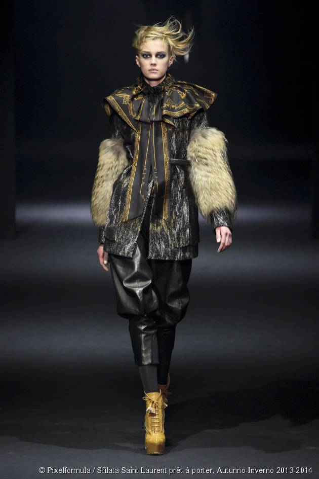 Per un’acconciatura come quella vista sulla sfilata Saint-Laurent (foto qui sopra), dovrai optare per un carré, acconciatura della stagione. Il tocco di rock attitude è dato dalla frangia a ciuffo, che copre gli occhi. Look ribelle garantito! Più di tendenza di una parrucca da strega. Per realizzare quest’acconciatura asciuga i capelli con la testa all’ingiù per dar loro più volume.  Stilizza poi l’acconciatura portando la frangia sugli occhi. Dovrà essere piuttosto sottile e sfilata per permetterti di vedere bene. Lavora le lunghezze con la spuma asciugandole in modo da dar loro un effetto disordinato senza comunque dare un’impressione di trascuratezza all’acconciatura. Vaporizza una nuvola di lacca ed eccoti pronta… per affrontare i fantasmi di Halloween!