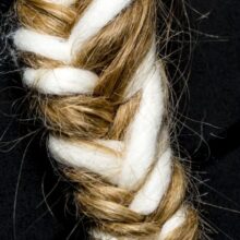 La treccia imbottita, vista sulle passerelle. Vista di fronte, l’acconciatura non ha nulla di particolarmente originale. I capelli sono spazzolati all’indietro e raccolti sulla parte alta della testa. Annodati in una coda di cavallo, l’unico tocco inedito è dato dal filo di cotone che fa da nodo. In realtà è un elastico classico che permette di creare la coda di cavallo. Una volta realizzata la coda, l’elastico è ricoperto dal filo di cotone, anch’esso incorporato fra le lunghezze. Il filo di cotone costituisce il terzo ramo della treccia ed è incorporato in maniera casuale in mezzo all’acconciatura.