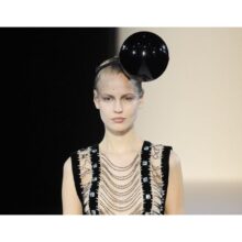 La sfilata Giorgio Armani (in foto) può servire di ispirazione. In questo caso l’accessorio è un cerchietto sul quale figura una sfera nera XXL. Perfetto da abbinare al tuo tubino nero da sera! Su una coda di cavallo alta o uno chignon bun il cerchietto è maestoso. Il tocco seducente è dato da una piccola violetta che va a sistemarsi proprio davanti al viso.