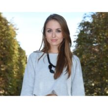 Il suo look? La sua mise è femminile e trendy. Indossa una t-shirt loose nei toni del blu-grigio, infilata dentro una gonna di media lunghezza a vita alta. Quest’ultima, color cammello, è un ottimo richiamo ai suoi capelli castani e si sposa alla perfezione col suo incarnato. Per quanto riguarda le scarpe, ha optato per una paio di décolleté nude che slanciano la sua silhouette. La sua pochette oversize stampata aggiunge invece un tocco di originalità. Una collana di pietre nere, infine, rifinisce il tutto e dona un’aria più che mai seducente.