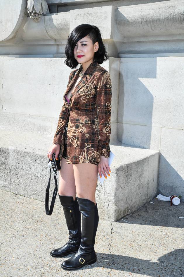 Il suo look? Influenzato dalle tendenze grunge ma anche dalle star del rock! Il nostro streetstyle del giorno non dimentica però di mettere in evidenza i tocchi femminili della sua mise. Ha quindi puntato su una camicia molto scollata e su un mini-short. Li abbina a un paio di stivali in pelle neri e a una collana girocollo, per uno stile piuttosto minimalista. Il suo make-up contribuisce a rifinire il suo look: rossetto rosso, occhi sottolineati dal kajal e zigomi rialzati. Fashion e beauty look davvero perfetti!