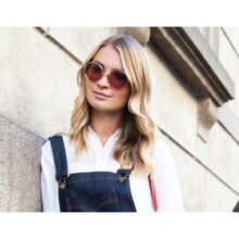 Il suo look? Ispirato agli anni 60. Il capo più importante è una salopette a zampa d’elefante, decisamente retro. Una camicia bianca e un paio di scarpe nere col tacco, particolarmente discrete, lasciano che la salopette sia completamente al centro dell’attenzione. Una tracolla rossa, coordinata allo smalto, dimostra la sua particolare attenzione ai dettagli. Il tocco finale? Gli occhiali da sole dalla montatura tonda. Per una Brigitte Bardot dei tempi moderni.