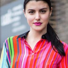 Il nostro streetstyle di oggi riempie gli occhi con un arcobaleno di colori. L’outfit è composto da una camicia dal taglio leggermente bombato, con maniche a sbuffo, infilata in una gonna plissettata a vita alta. La nostra modella ha poi equilibrato l’esplosione di vivacità dei vestiti, scegliendo il non colore per gli accessori sobri e discreti: la piccola borsa a tracolla chiara, l’orologio con il cinturino nero e lo smalto alle unghie, ugualmente nero. Per un risultato molto originale, ha completato il look con un tocco ricercato: un paio di tronchetti a stampa leopardo che allungano la sua silhouette già slanciata.