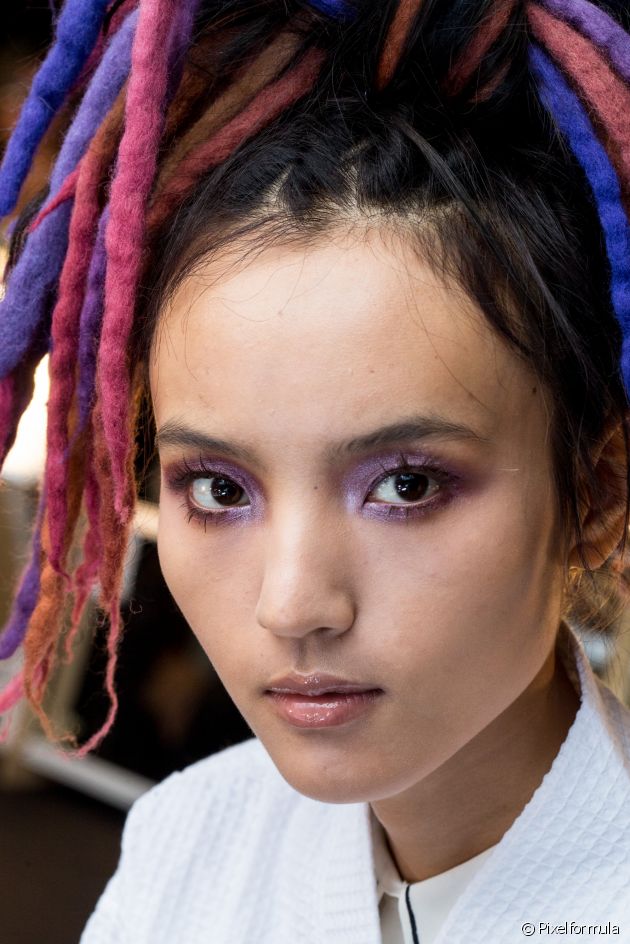 In versione coda di cavallo con un unico e imponente nodo, oppure in versione multipla sulle lunghezze sciolte, i dreadlocks sono rivisitati in tutta leggerezza alla sfilata Maison Martin Margiela. Dei look originali, lontani dalle pettinature massicce del passato, che danno un’aria sorprendentemente sobria e facile da portare. Da copiare senza esitazione.