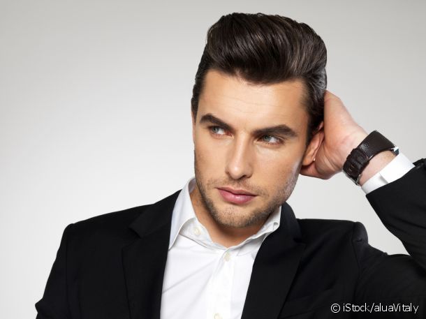 Per realizzare questo look fissa i capelli ai lati aderenti alla testa con il gel e poi, con le lunghezze, crea una banana dall’allure anni Settanta. Lo stile è perfetto per chi ama i grandi classici.