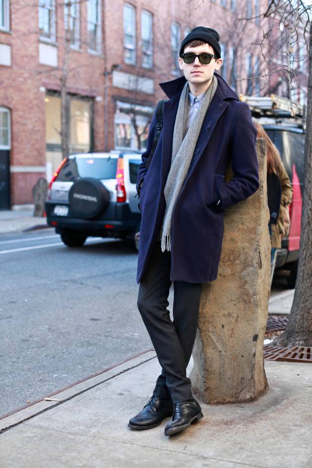 La sua pettinatura? Un taglio molto corto con una frangia un po’ più lunga che cade sulla fronte. Il suo taglio non richiede tante attenzioni quotidiane. I capelli infatti sono talmente corti che non è necessario il gel perché restino in piega. In inverno il nostro streetstyle del giorno mostra molto poco i suoi capelli perché fa troppo freddo! Per fare in modo che il modello di berretto non modifichi il suo stile, l’ha scelto adeguato al suo look: non troppo calcato sulla testa, con risvolto e di colore scuro. Di che passare l’inverno al caldo e con stile.